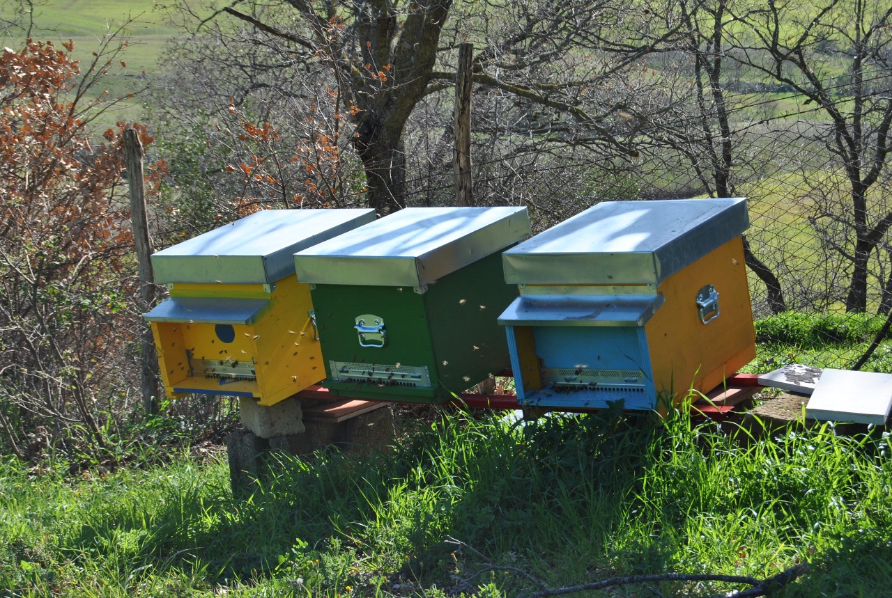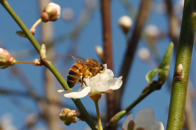 Tra un giorno di pioggia e l'altro ogni tanto capita di vedere il sole: oggi è stata una giornata primaverile e nel primo pomeriggio nonostante un pò di vento la temperatura era intorno a 13,5° C e le api erano tutte a lavoro! C'era un gran via vai davanti alle arnie